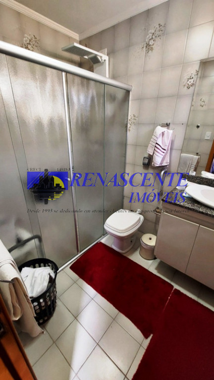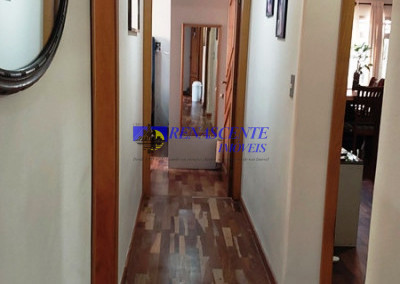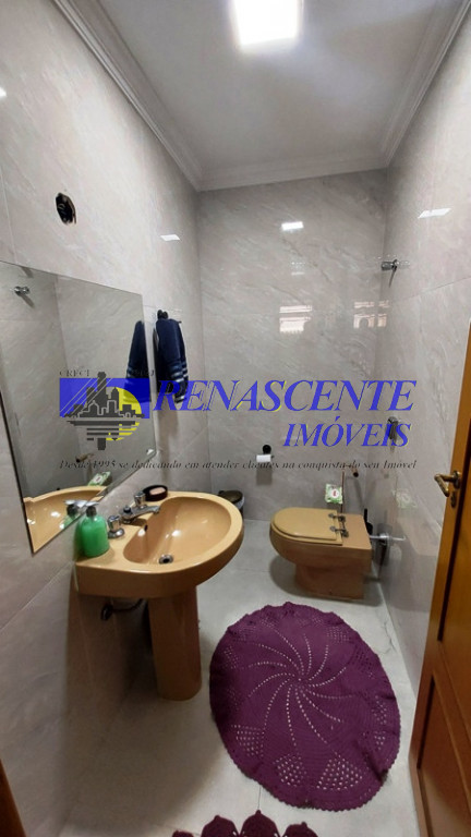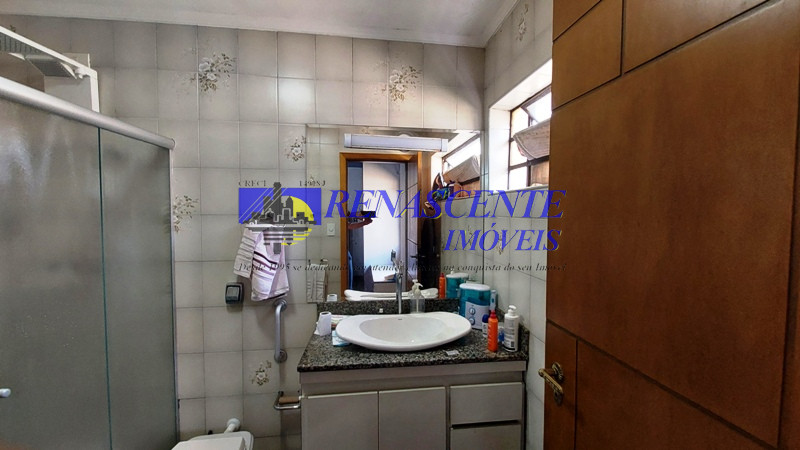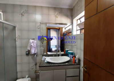 Casa térrea de esquina, com 5 dormitórios, sendo uma suíte, mais 2 banheiros, e um lavabo. Todos os banheiros com box de vidro, e prateleiras de vidros dentro do box.