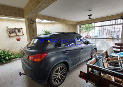 Garagem da frente comporta dois carros, com portão de correr, manual, que pode ser automatizado, mais um jardim em torno de 4m, com uma grande Camélia e um jardim lateral como se fosse um jardim de inverno.