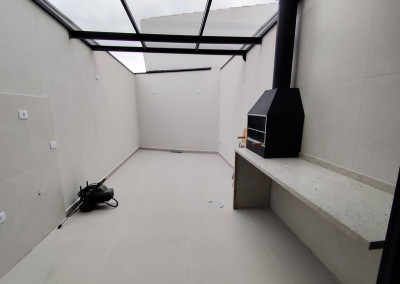 Lazer Privativo: Espaço gourmet com churrasqueira e cobertura em vidro temperado, garantindo uso o ano todo.