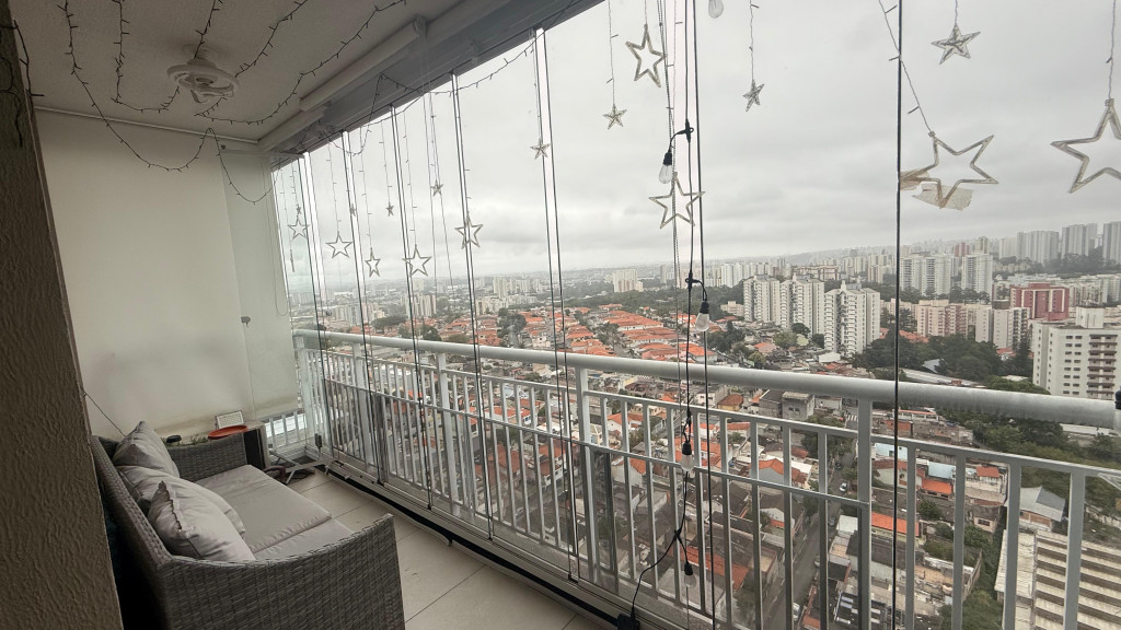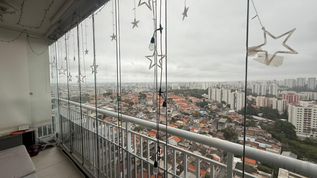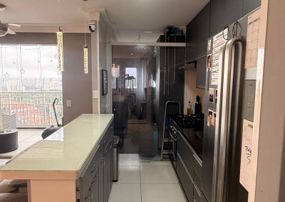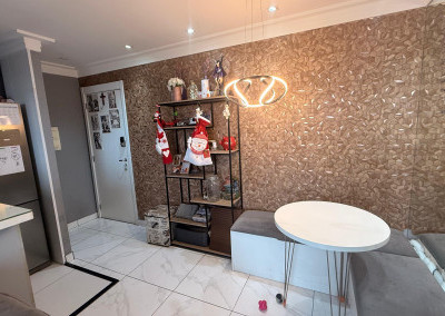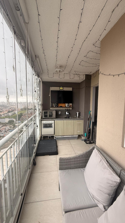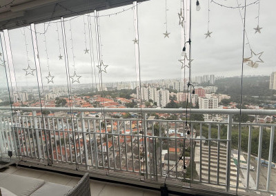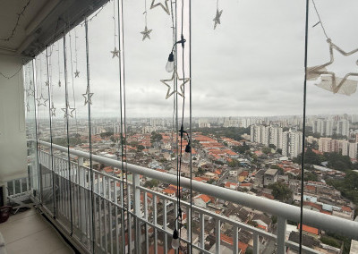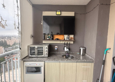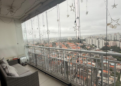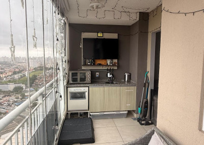 • Sacada envidraçada com espaço para lounge e área de apoio (com bancada/pia)
