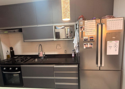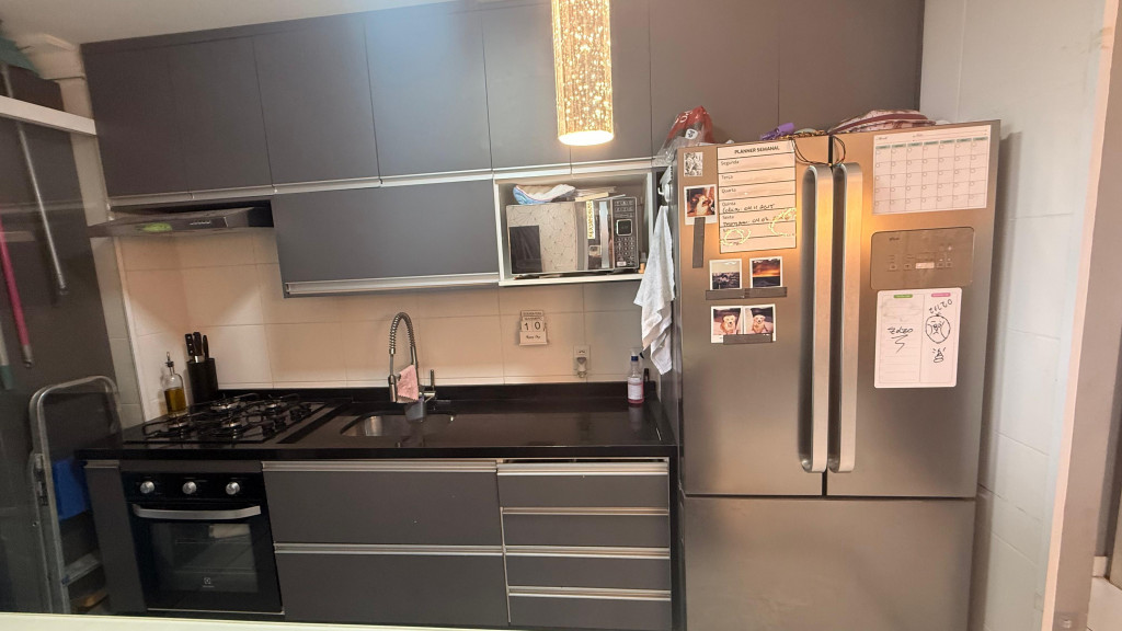 Equipamentos inclusos até na locação: fogão, micro-ondas e geladeira