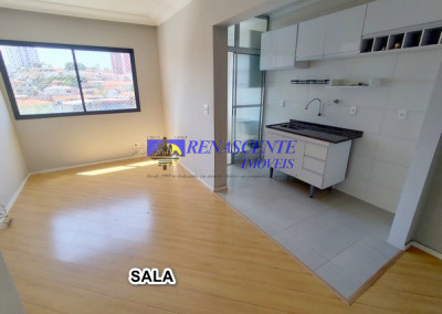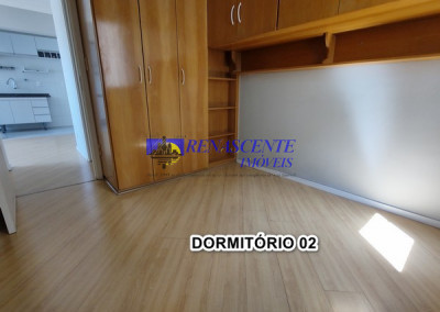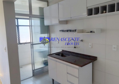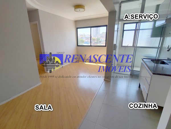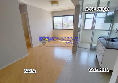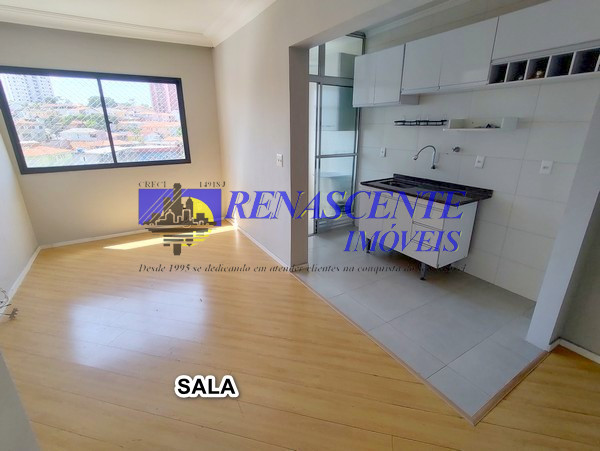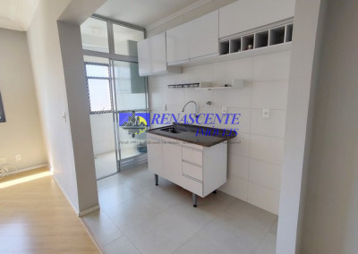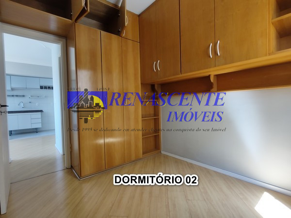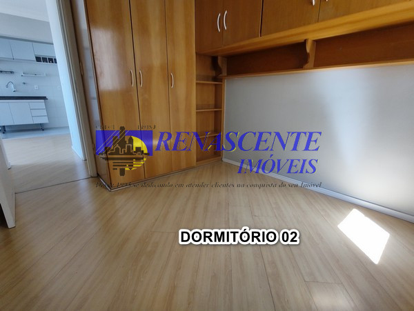 Apartamento para locação com sala em piso laminado, cozinha americana com armários e área de serviço com armário. Sao dois quartos ( sedo um com armário embutido), apartamento voltado para os fundos. Lazer do condomínio: 1 piscina adulto e infantil e outra piscina para adulo, loja de conveniência, 2 salões de festas, academia, play ground, 01 vaga livre e coberta com rodízio anual em dezembro. Prédio com 3 torres de 7 andares com 8 apto por andar ( 4 apto na frente e 4 voltado para os fundos), apto de 43 metros. Perto da padaria Primícia dos Pães na rua das Flechas.