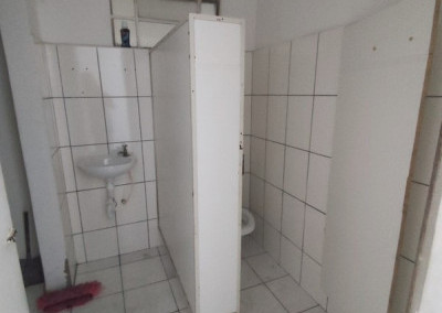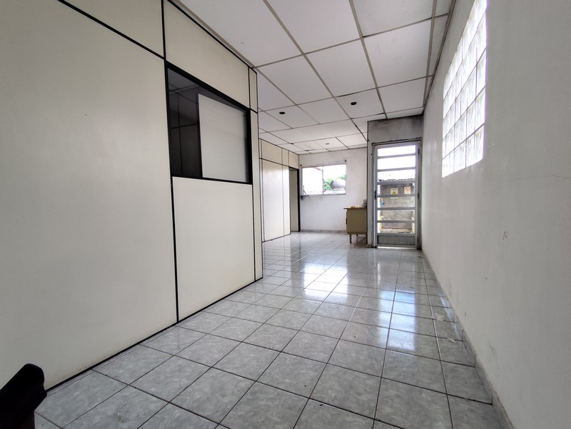 O segundo pavimento, com acesso por escada, dispõe de quatro salas adicionais e mais um banheiro, perfeito para escritórios, salas de reunião ou estoque leve. A fachada oferece duas vagas de garagem e portão com altura adequada para operações de carga e descarga.