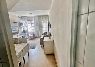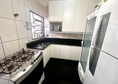 Destaques do Imóvel: 2 Dormitórios bem distribuídos. Sala com piso em Moca Marmore, proporcionando elegância e durabilidade. Cozinha moderna com armários planejados novos, piso e balcão em Granito Preto São Gabriel. 2 Vagas de garagem individuais. Banheiro social funcional. Quintal privativo!