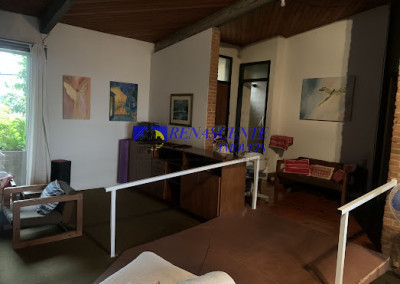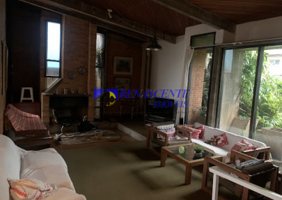 Sala: Ampla, para 3 ambientes, com lareira.